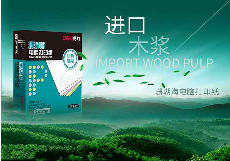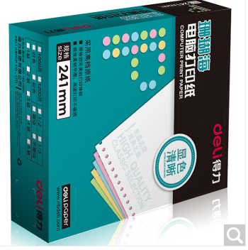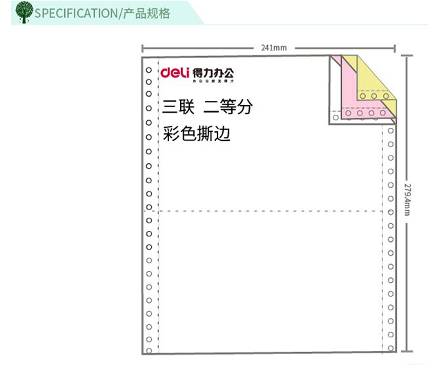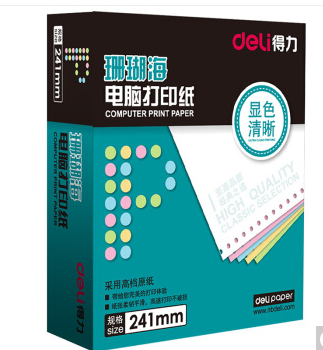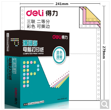 得力(deli)珊瑚海三聯(lián)二等分電腦打印紙 彩色針式打印紙S241-3-1/2CS 80列(撕邊 色序:白紅黃 1000頁/箱)