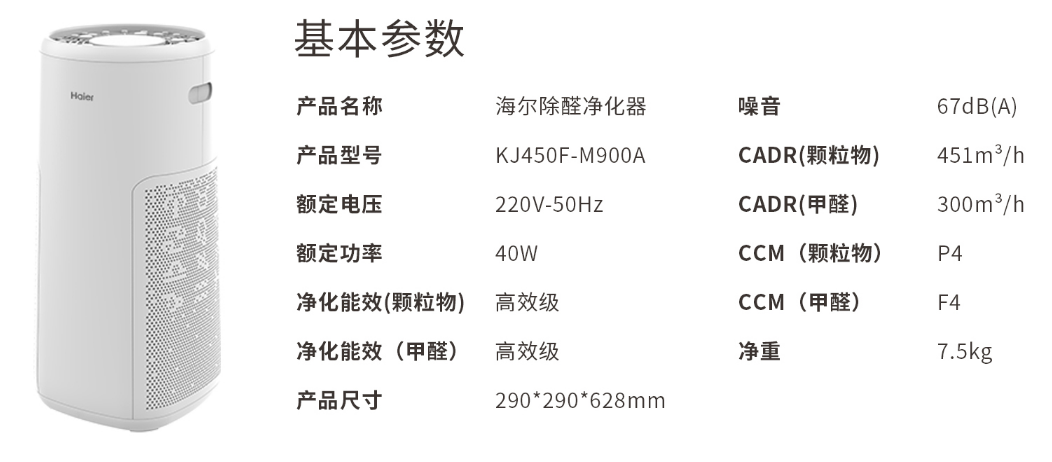 海爾空氣凈化器KJ450F-M900A 白色(支持HUAWEI HiLink)