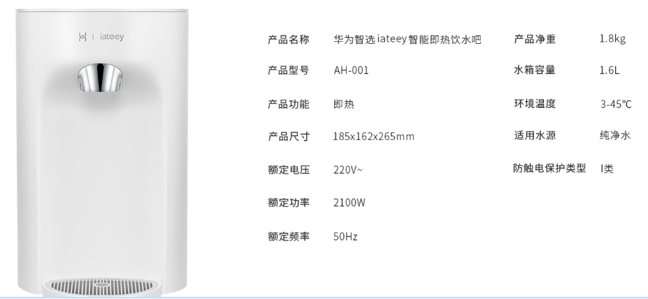 華為智選生態(tài)產(chǎn)品 iateey智能即熱飲水吧(白色)(支持HUAWEI HiLink)