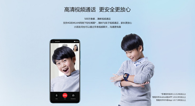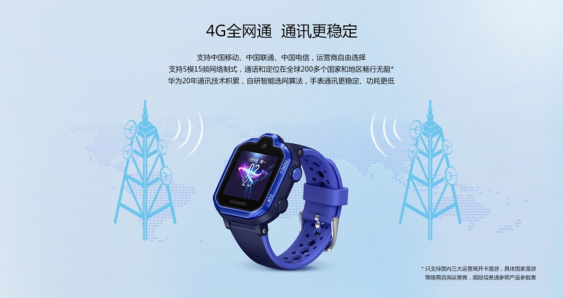 華為兒童手表 3 Pro(極光藍)視頻通話 高清拍照 九重定位 4G全網(wǎng)通學生電話手表