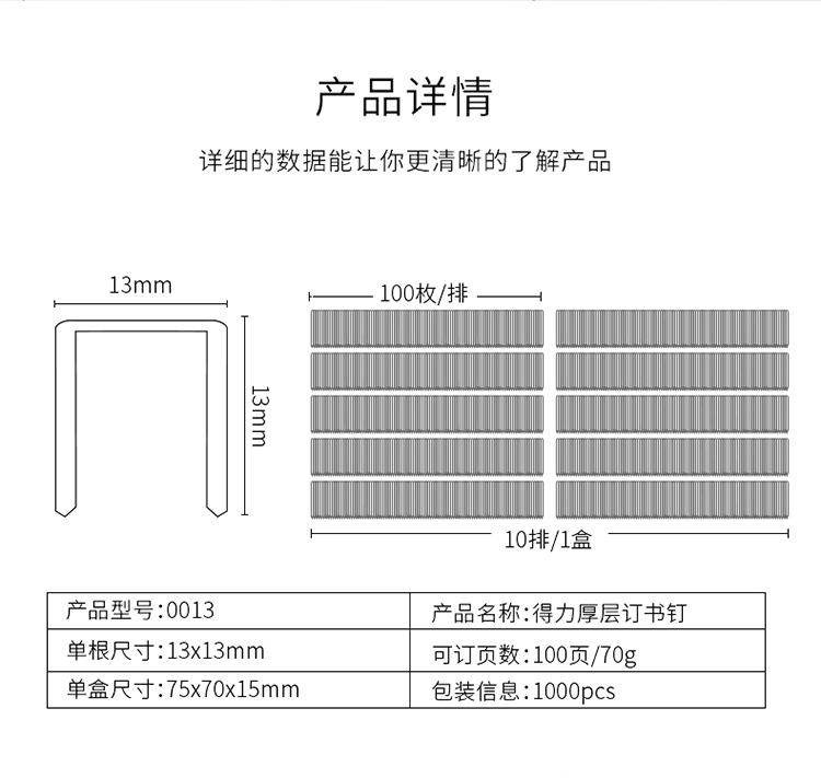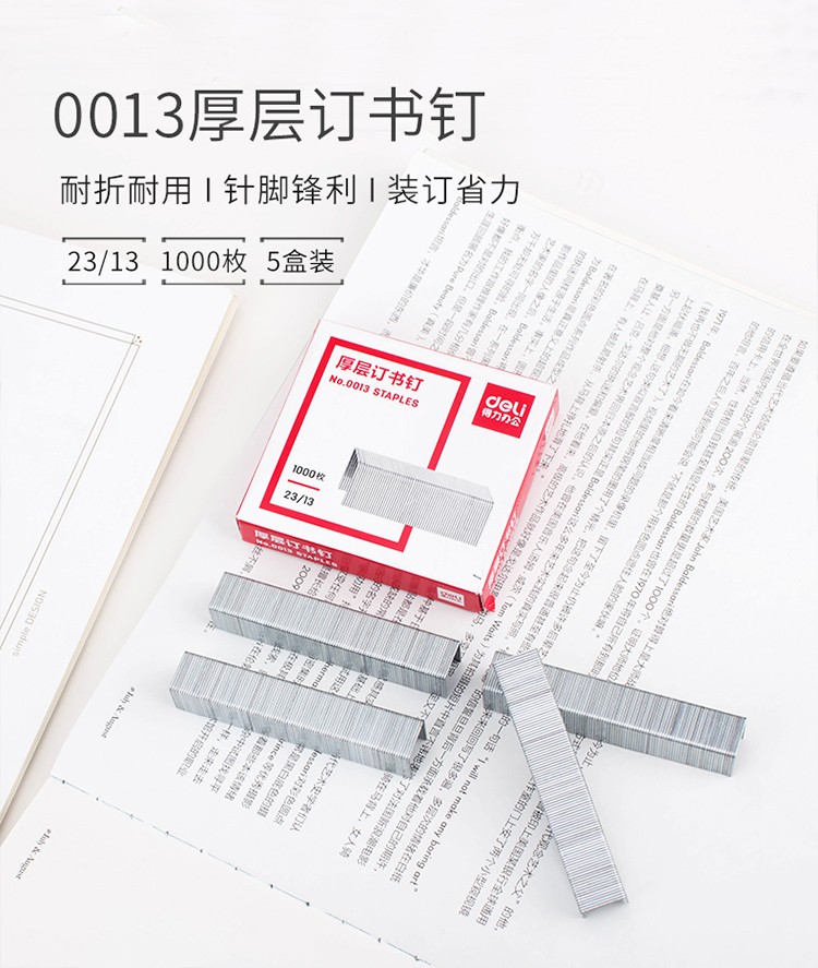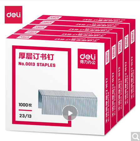 得力(deli)2313厚層訂書釘訂書針 1000枚盒 5盒裝 辦公用品 0013